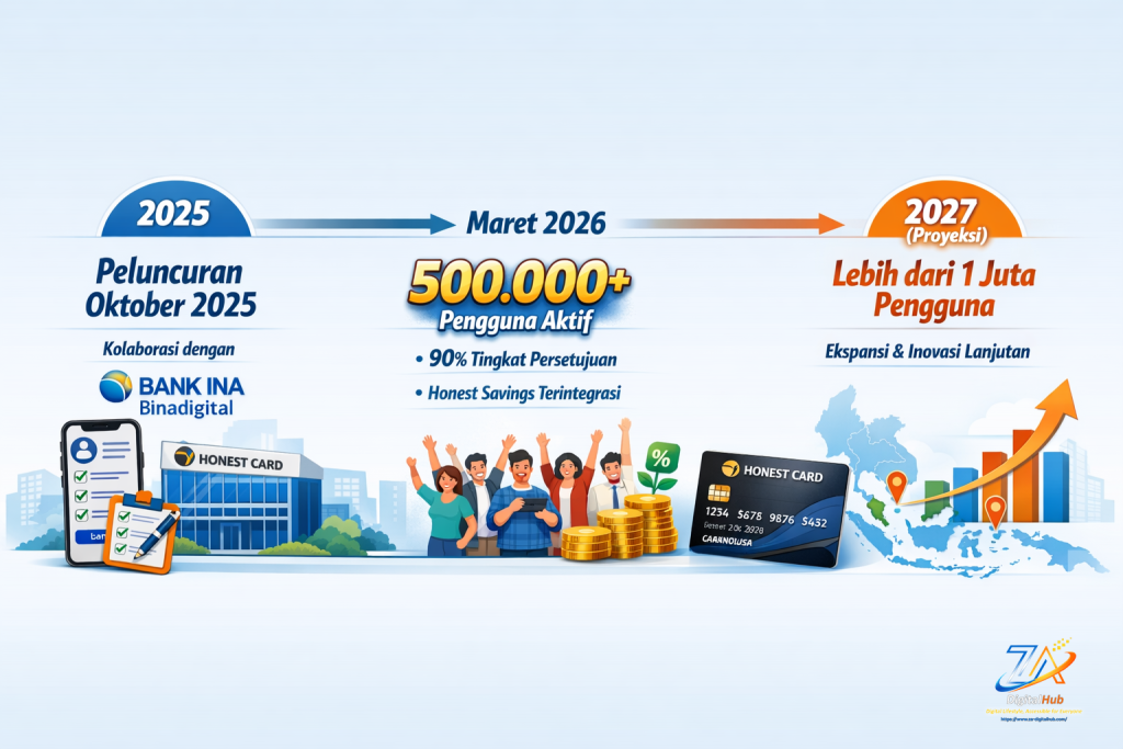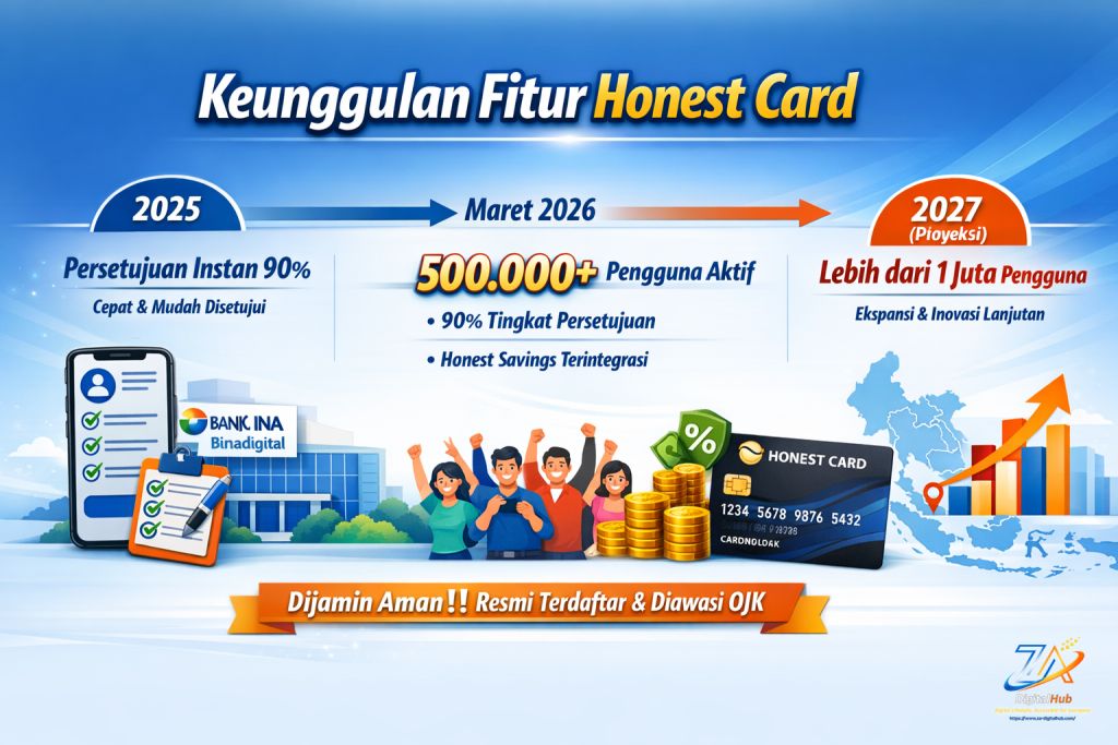 ZA-DigitalHub.com – Honest Card kini menjadi salah satu kartu kredit digital paling inklusif di Indonesia, berkat kolaborasinya dengan Bank INA melalui layanan Binadigital. Per Maret 2026, jumlah pengguna Honest Card terus meningkat secara signifikan, didorong oleh tingkat persetujuan hingga 90%, bahkan untuk pemohon dengan riwayat finansial kurang meyakinkan.
